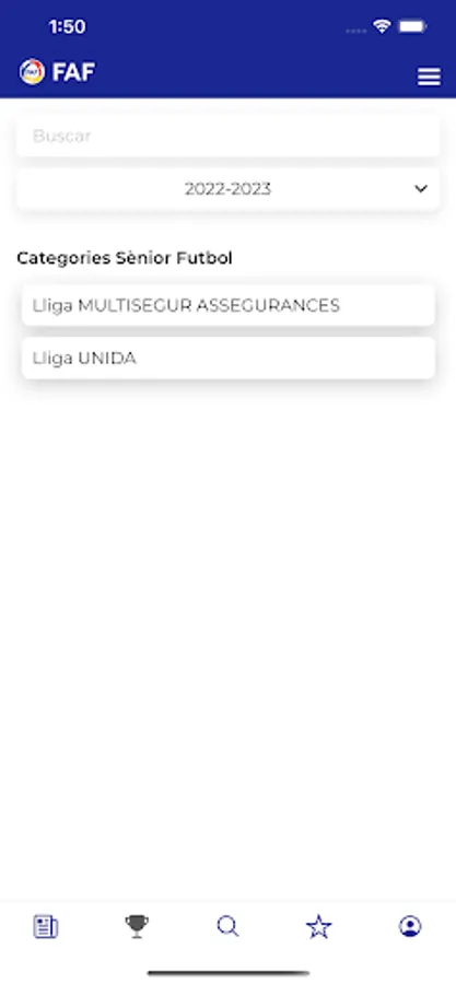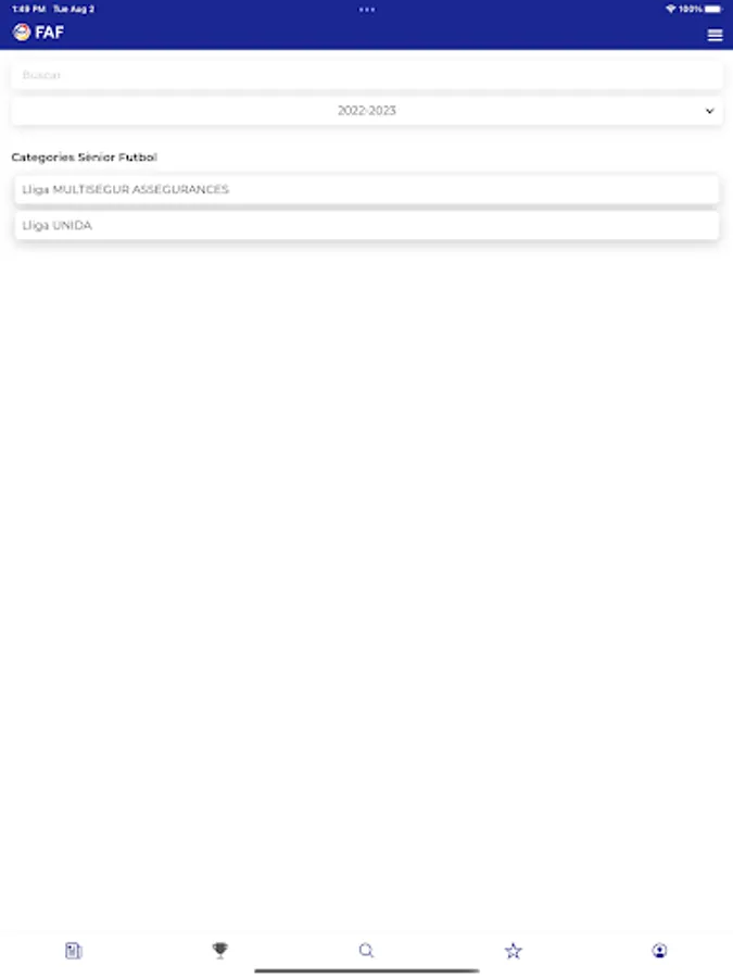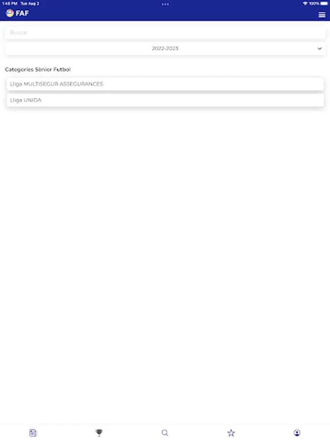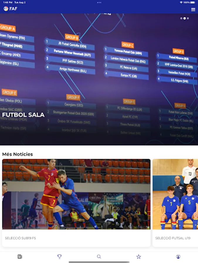 An adapted, simple, intuitive and accessible application for all the publics, with the aim of appropriating Andorran football to all the cases.