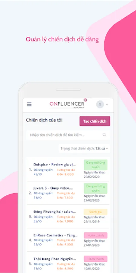 Onfluencer - The platform that connects thousands of advertisers with tens of thousands of influencers, helping to convey advertisers' messages to tens of millions of social network users in Vietnam.