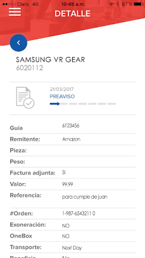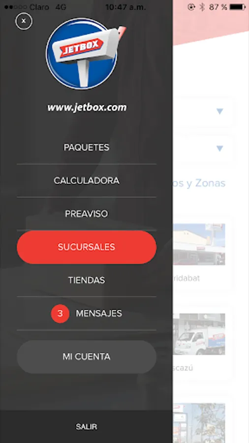 Account: Provides information JetBox account including Miami Address and Delivery Address in Costa Rica.