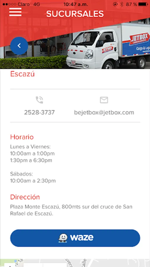 Branches: displays the time and location map of each Branch and Area Delivery available
