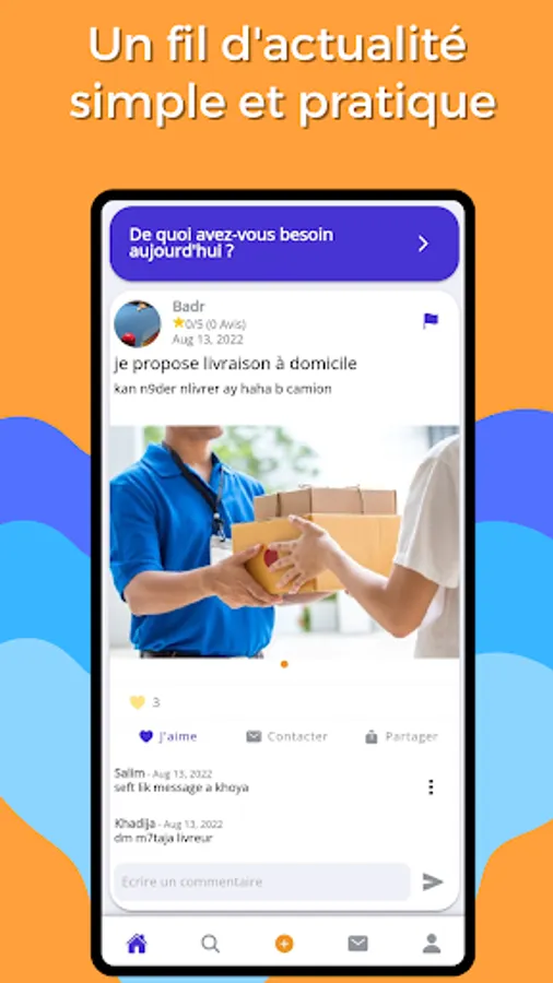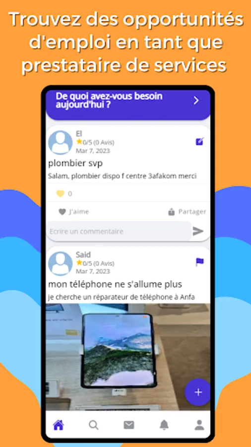 Thanks to the news feed, you can see the latest services offered by users. You can interact live with them and ask them questions if you are interested in a particular service. This allows you to stay informed of the services offered and to quickly find the professional you need, if you are a professional, this news feed presents you with a wide choice of job offers.
