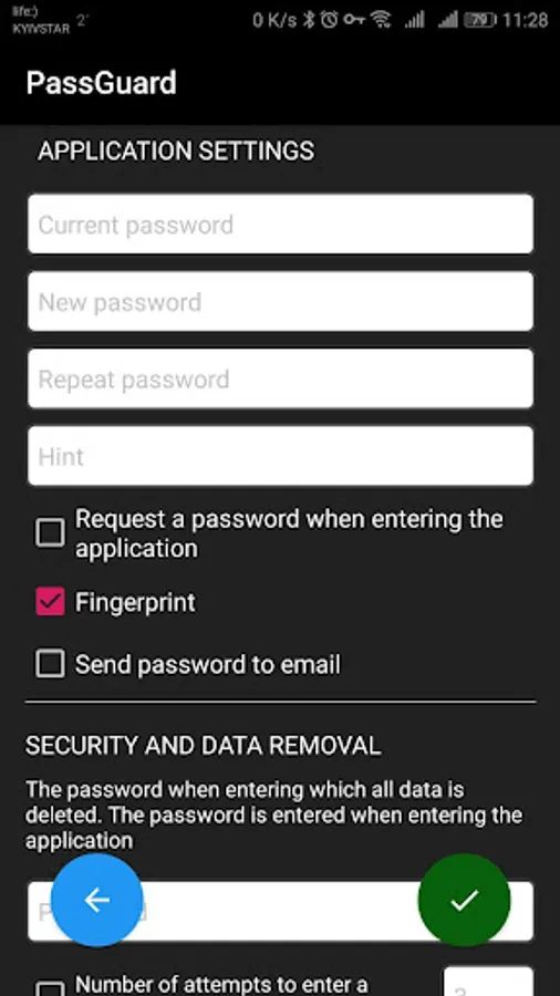 • Clearing all data from the application by clicking in the settings "Delete all"