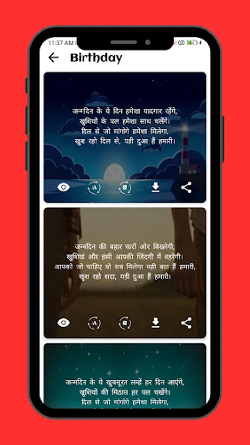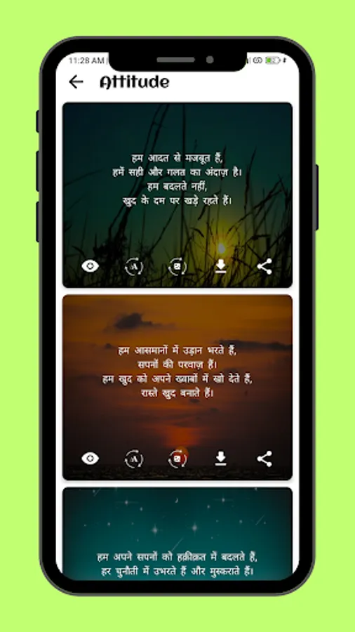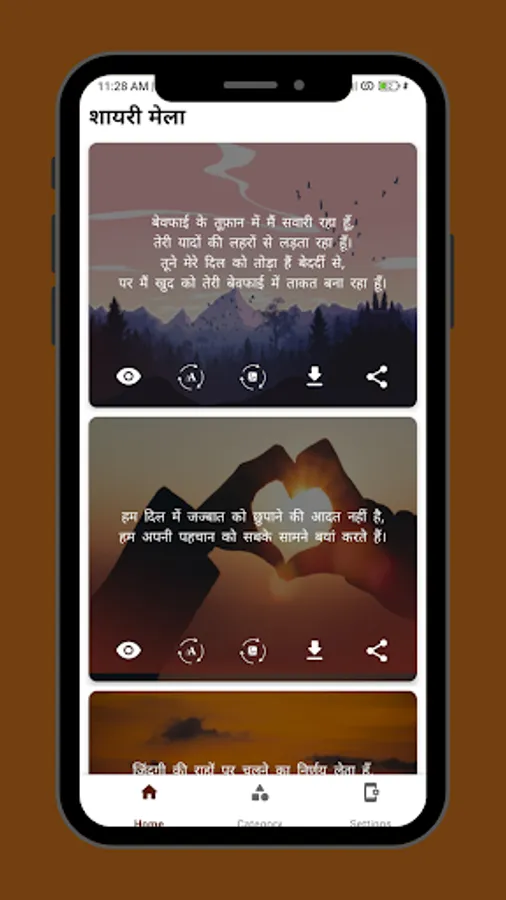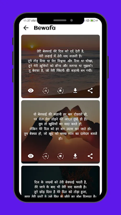 Download Shayari: 💾📥 User can download their favorite Shayari and save it in their phone. This gives them an opportunity to enjoy Shayari even without an internet connection.