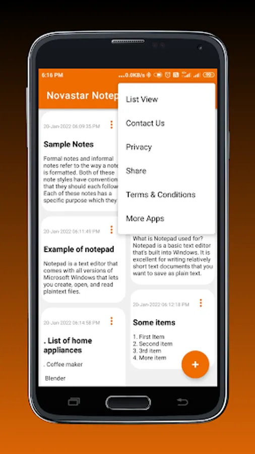 This notepad has a good UI. You will love to use it. In the Novastar Notepad, you can View you note as Grid view or with the List view. The app has good animation you will like it. The novastar notepad is a bug free notepad.