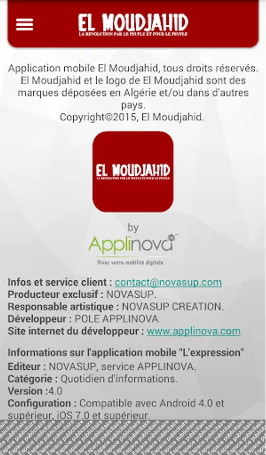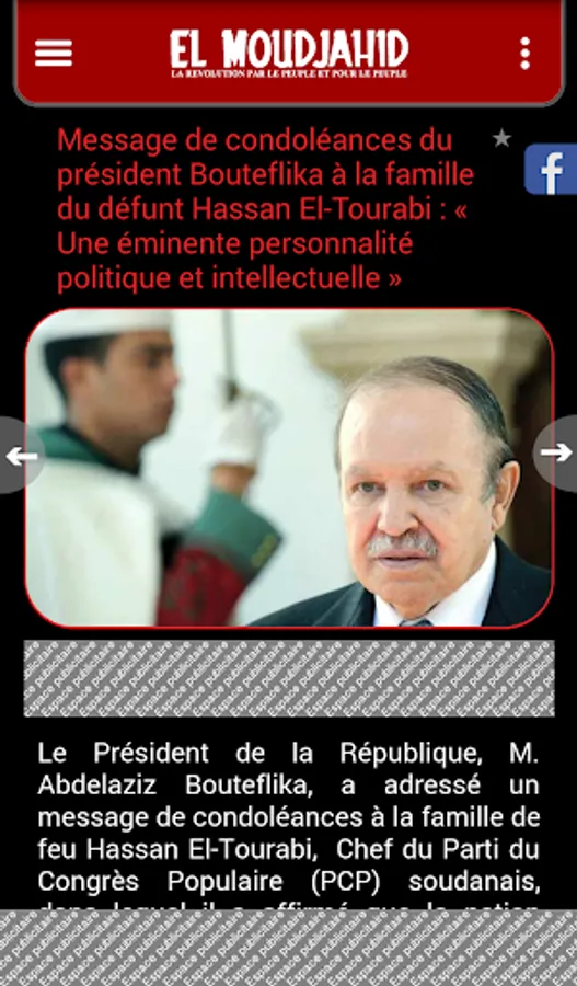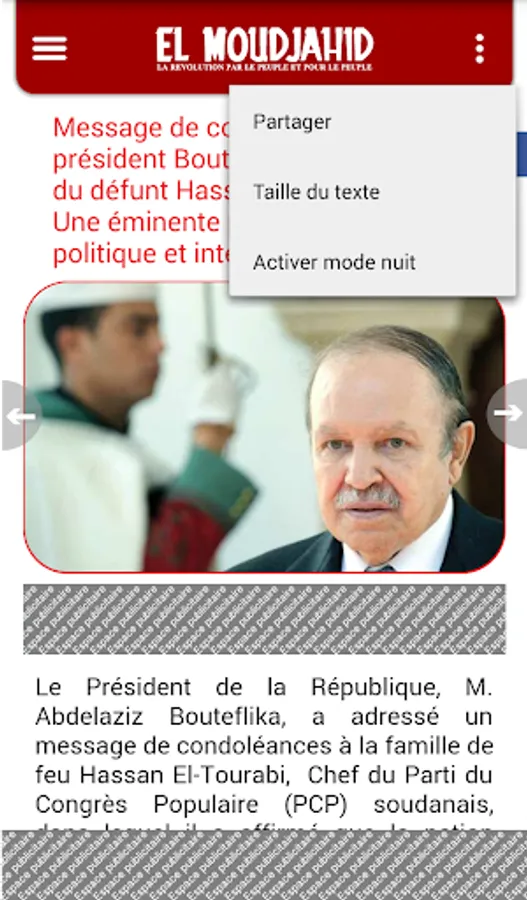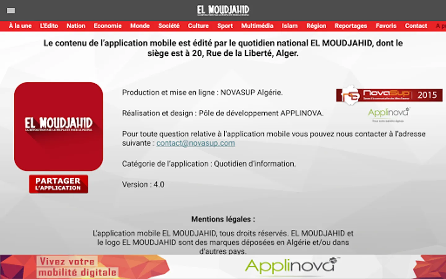 A text magnification option is also available, allowing you a more comfortable reading. The Favorites folder will enable you to treasure the items selected in your application, once the updating done, more needs to be connected freely enjoy the daily El Moudjahid in offline mode ...