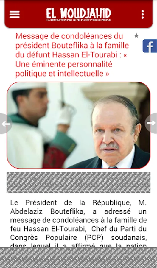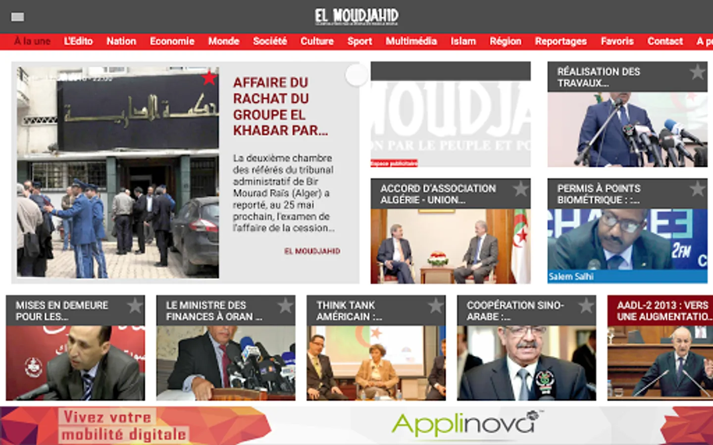 El Moudjahid has one of the most modern websites of all the Algerian press. The information is regularly updated and the site is available in 4 languages (French, Arabic, English, Spanish).