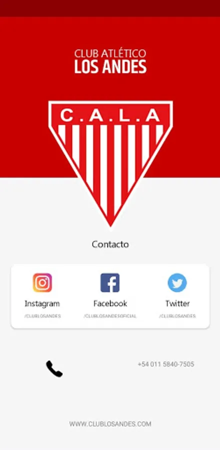 The Official Application of Club Atlético Los Andes will allow you in this first stage to know the means with which you can contact us and will provide you with the link to our Social networks, as well as show you a small review of the CLUB.