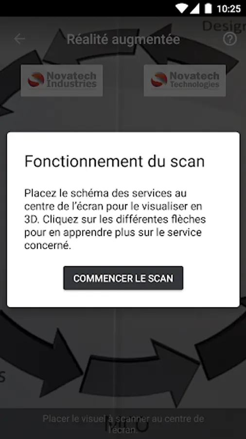 The 3D animation is triggered from a visual present on commercial brochures. Once the animation is triggered, you can interact with the industrial process step designation arrows and display the functions you want to study.