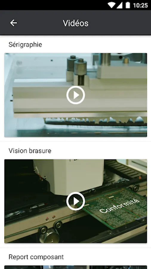 This application allows you to discover the stages of production of electronic cards from initial design to after sales service.