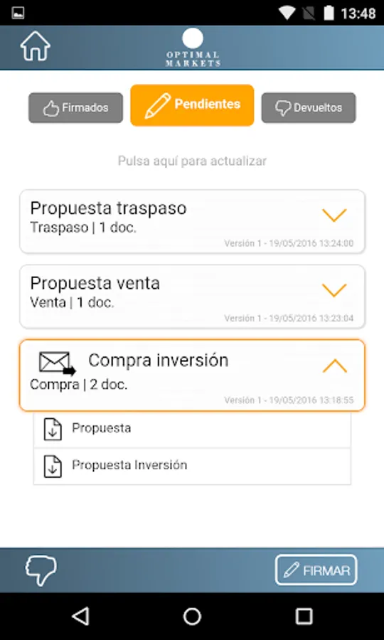 With our app you can make signing documents using digital signatures under the highest standards of security and access to relevant market information and investment.