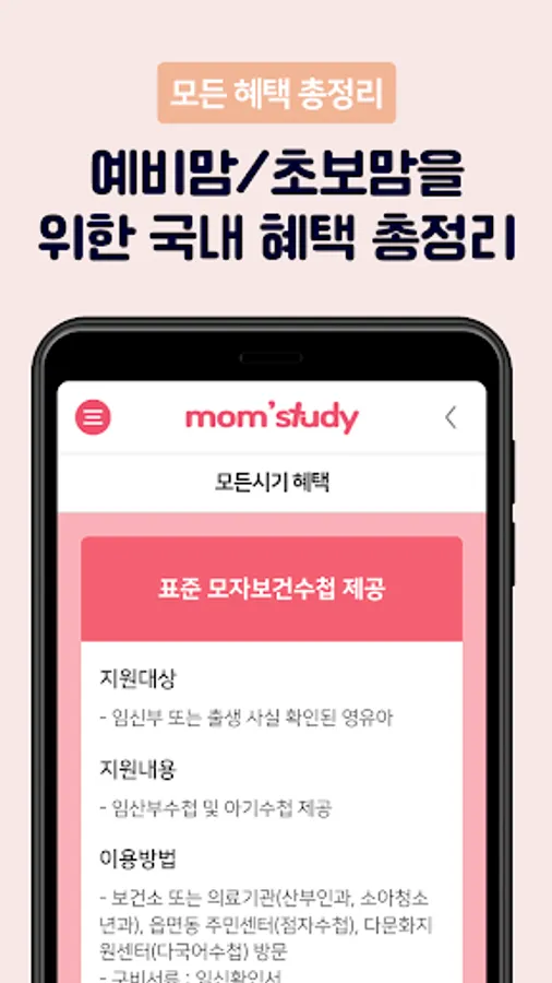 Mom's Study informs you of the benefits that pregnant women and mothers can receive from various places.