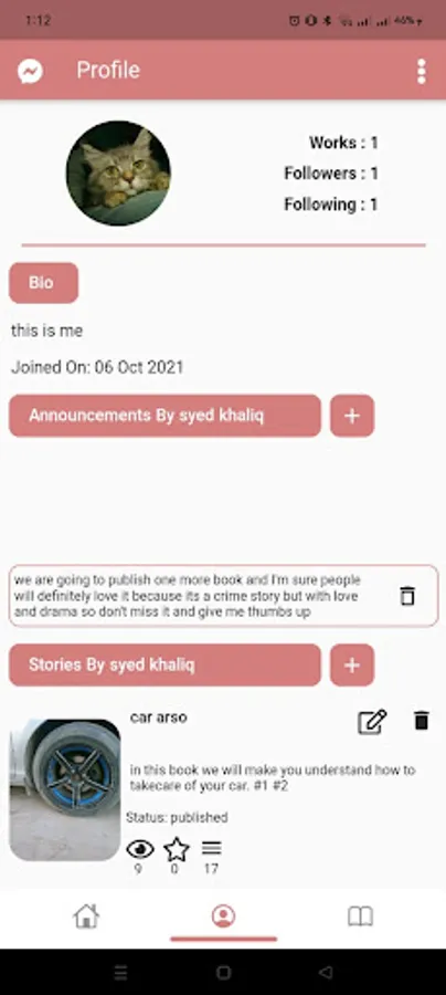 Online book reading app where you can read and write stories to your hearts content.