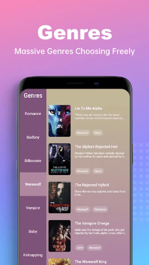 -Intelligent Recommendation: RosyNovel has customized recommendations to help you find your next book, such as top romance, trending tags, werewolf & hot, reader’s choice. What’s more, you can create your own booklist! Best recommendation for you!