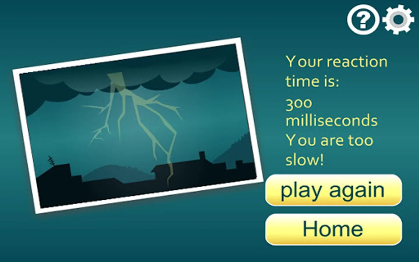 Can you press the shutter when you catch a glimpse of the lightning? As an enthusiast of photography, your goal is to take a beautiful photo of the lightning during a thunderstorm. Since the lightning may strike at any moment, you need to get ready and prepare to hit the shutter. Remember not to shoot before the lightning appears, or you will lose. Click to take a photo when a bolt of lightning lights up the sky; the quicker you react, the better your picture looks. Your score will be determined according to your reaction time in milliseconds, so response promptly and rocket to the top!
