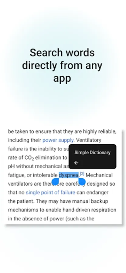 A perfect reading companion on your mobile device, easily search a word in the offline Wordnet® dictionary database from any app.