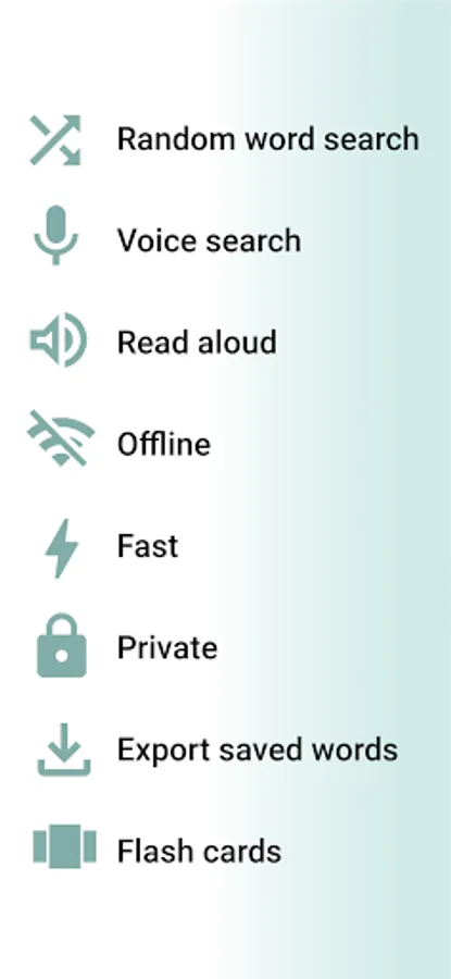 The app is designed to be very simple to use and one hand operable. You can easily keep track of the words that you discover and come back to them later. With features such as the built in flash cards you can expand your vocabulary with ease. All of the features and searches are fully offline and private.Hope the app will be a useful tool in improving your vocabulary 😄