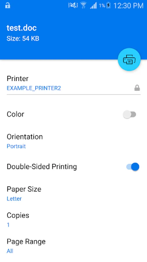 - Choose the Color, Orientation, Number of Copies, and Page Size through the Micro Focus iPrint app