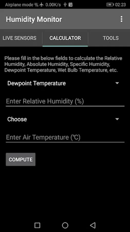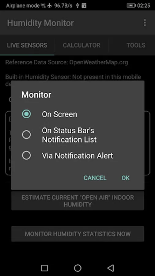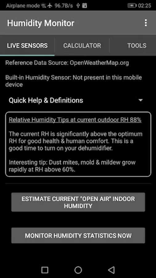Since Humidity Monitor is NOT A HUMIDITY SENSOR and cannot measure humidity. Thus, the app gets the basic outdoor humidity data from public weather/meteorological sources, analyze and compute out the relevant RH, AH, SH, DBT, WBT & DPT to help people in their everyday life.