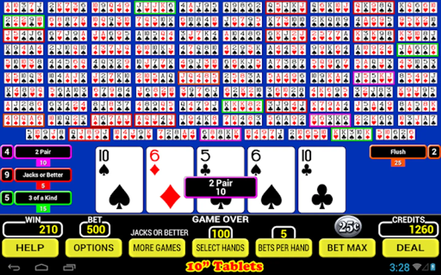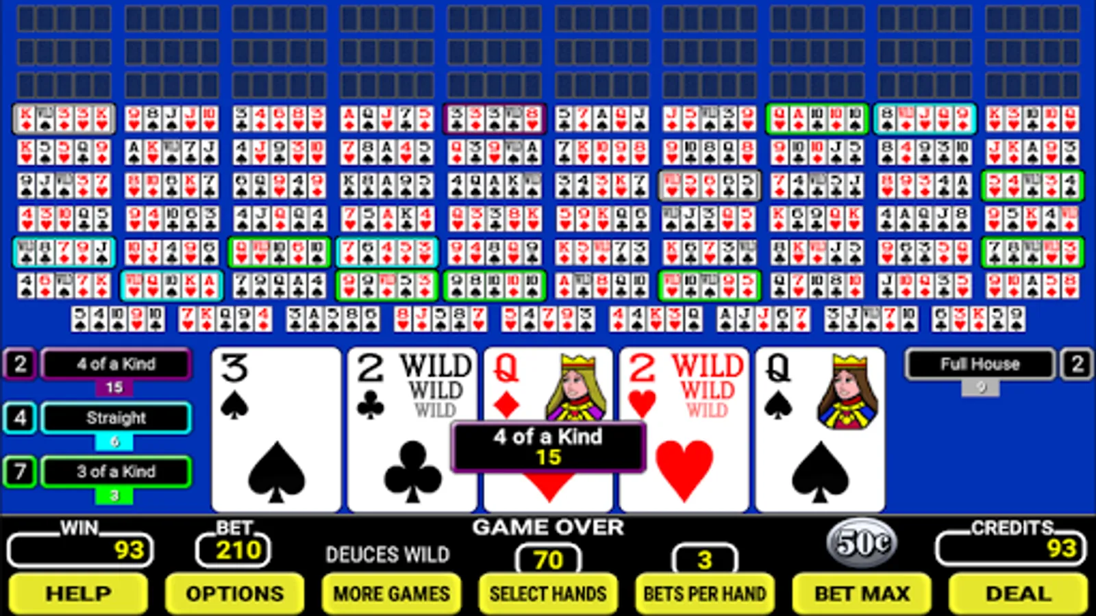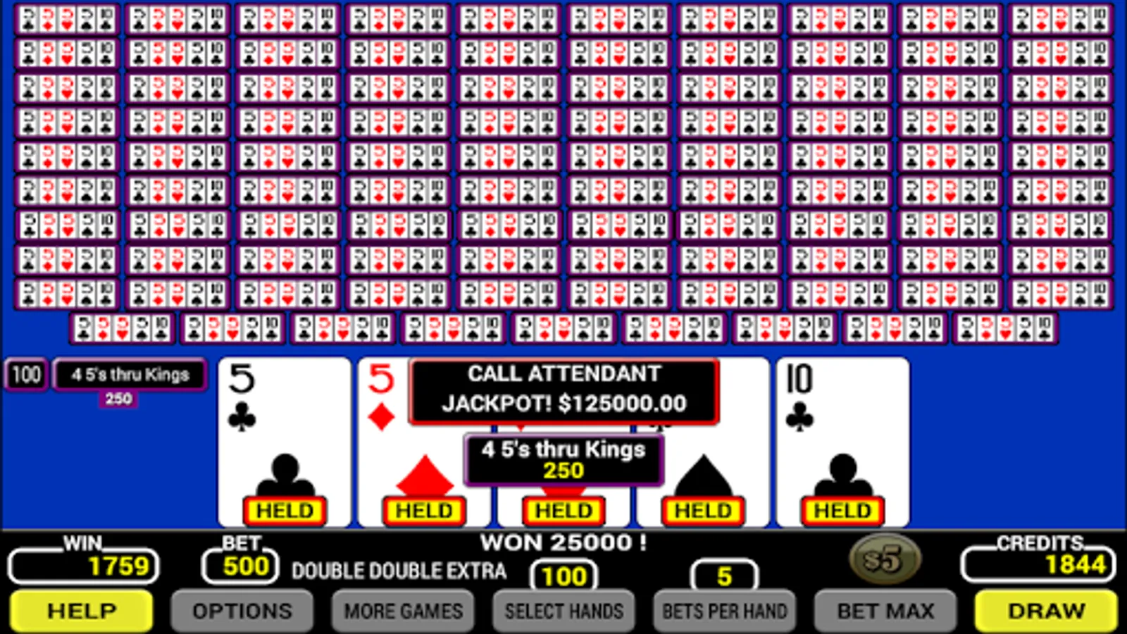 One Hundred hand multi-play video poker. 100 hands at once for 100 times the action! Unlike slots machines, video poker allows the player to use skill to beat the house. Play this popular game just like in Vegas.