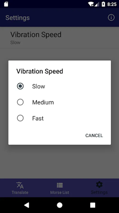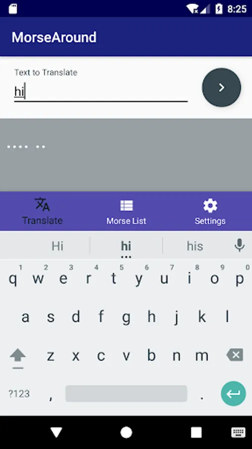 Tap on the translate for the code to be translated from dots and dashes to vibrations on your phone.