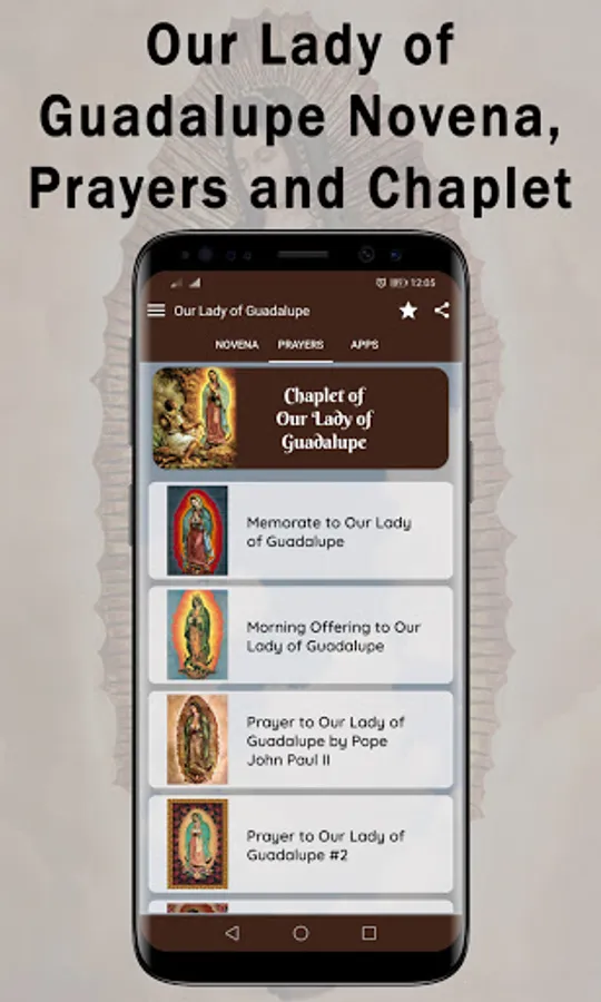 This time we want to offer you the best application you can find about Our Lady of Guadalupe, in which we compile the Novena of Our Lady of Guadalupe, the best Prayers of Our Lady of Guadalupe and the Chaplet of Our Lady of Guadalupe. As if that weren't enough, you will also find the Biography and history of the devotion to Our Lady of Guadalupe.