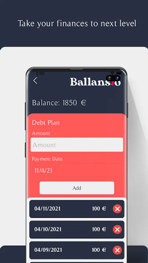 As a busy person, you're likely overwhelmed by all of your life's financial commitments. Ballansio's goal is to help make your life easier& less stressful. We do this by making managing your personal finance as painless as possible. Our app is easy to use and completely free! It even contains 10+ languages to make sure you're always comfortable when using the app. Download Ballansio today and have one less thing on.