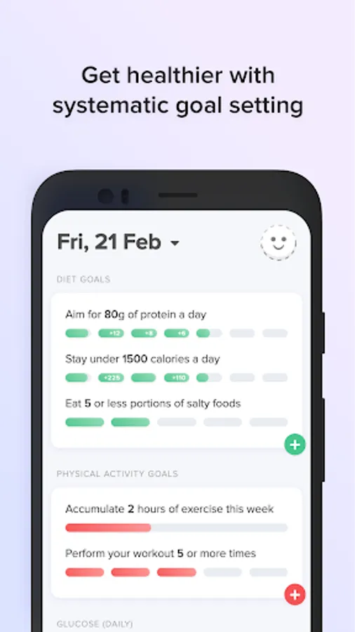 * Set daily, weekly and long term goals and track your progress to stay on track