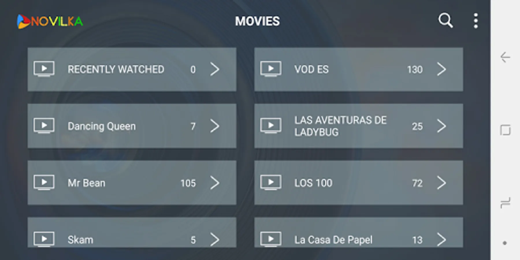 Novilka contains SD, HD and Full HD quality for different rates and EPG for channel