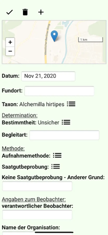 You need a username and password to use the app. You generate this with your registration at https://wips.deutschlandflora.de/user/login. For the final activation, please contact one of the four WIPs-De Verbundpartner, depending on the region in which you are reporting the occurrence of plants (https://www.wildpflanzenschutz.uni-osnabrueck.de/struktur-verbundpartner/):