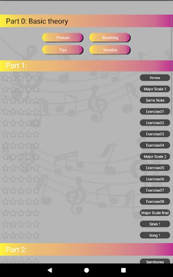Program to help your singing voice now on Android! You will learn how to sing with several exercises! The app tells you how you should sing indicating the correct note, and shows your score according to right pitch. An intuitive way to learn music without knowing sheet music, but very useful even for professional singers.