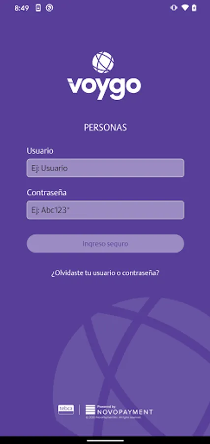 Register your data on Voygo.com and create your user account. These same data will be required to log into the App.