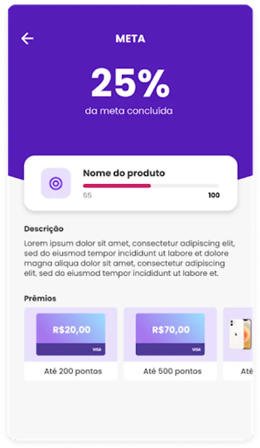 RampUp's application allows sellers to sell products in real time and participate in incentive campaigns, which have goals that will be converted into points and, at the end, into prizes from the participating companies' incentive campaigns.