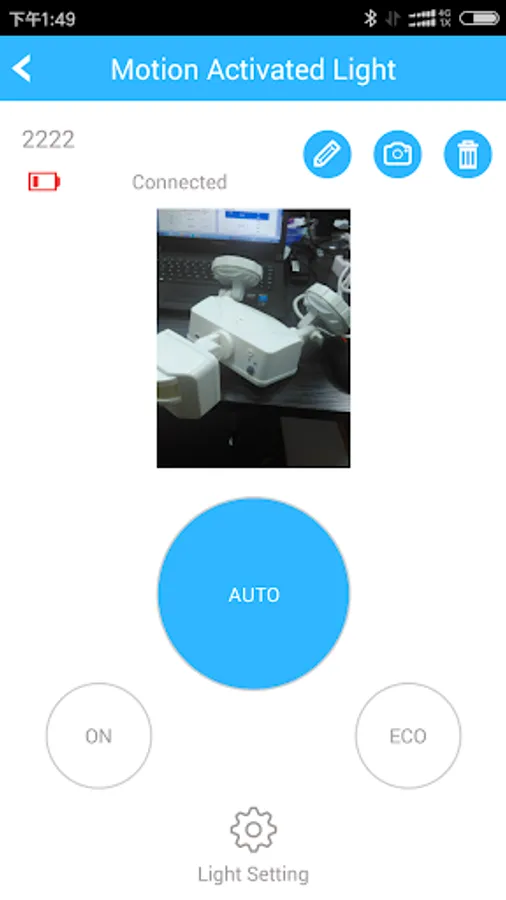 This app has three different operating mode. 1st is AUTO mode that will control the light automatically. 2nd mode is ECO, when battery runs low, light will turn to ECO mode automatically and dim light down and keep the light to run as long as possible. The 3rd one is Onetime ON mode, which allow to keep the lgiht stay on continuously up to one hour.