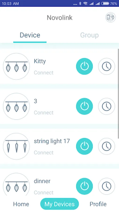 This APP is developed to control Novolink WiFi String light, which includes on&off switch, Timer, multicolour adjustment, lighting flash mode, lighting flash speed, brightness, and customisation of theme and string lights grouping.