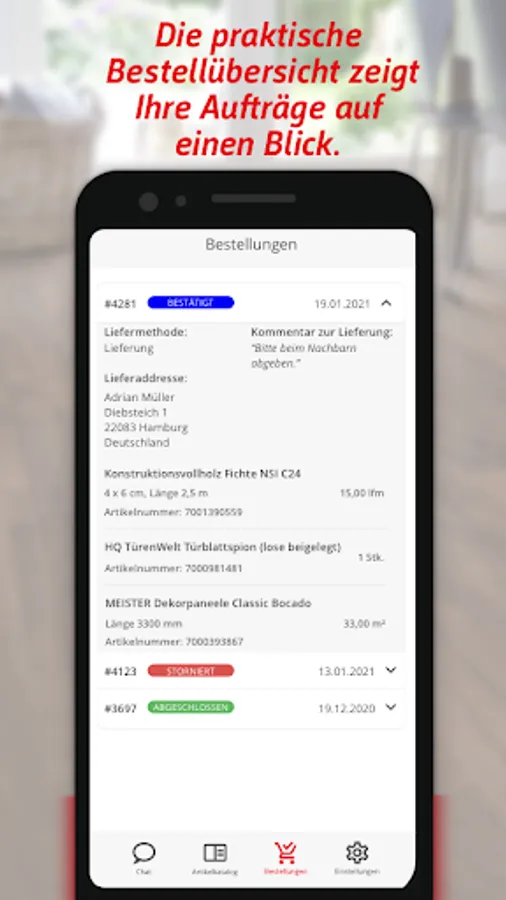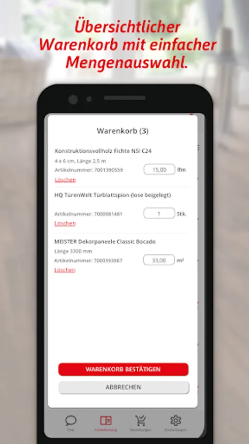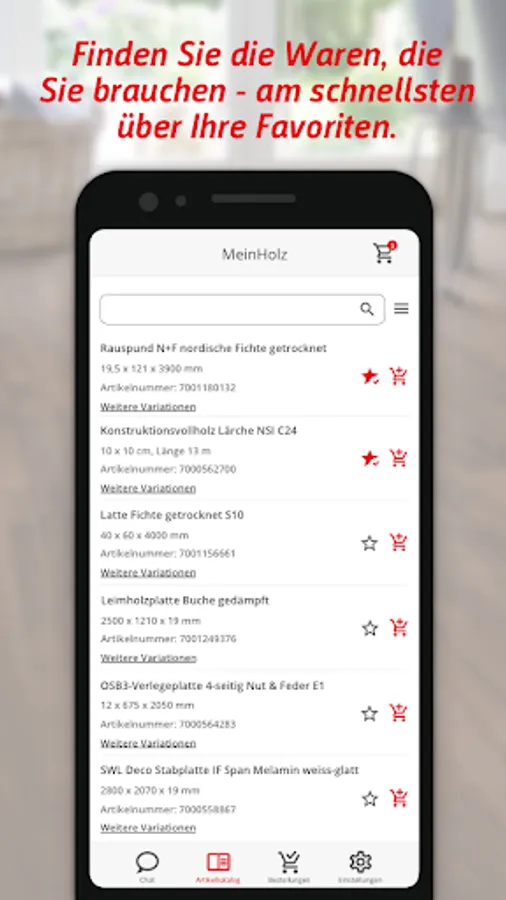 With the meinHolz app, you can conveniently buy the goods you need via smartphone, regardless of location, and contact your specialist dealer at any time.