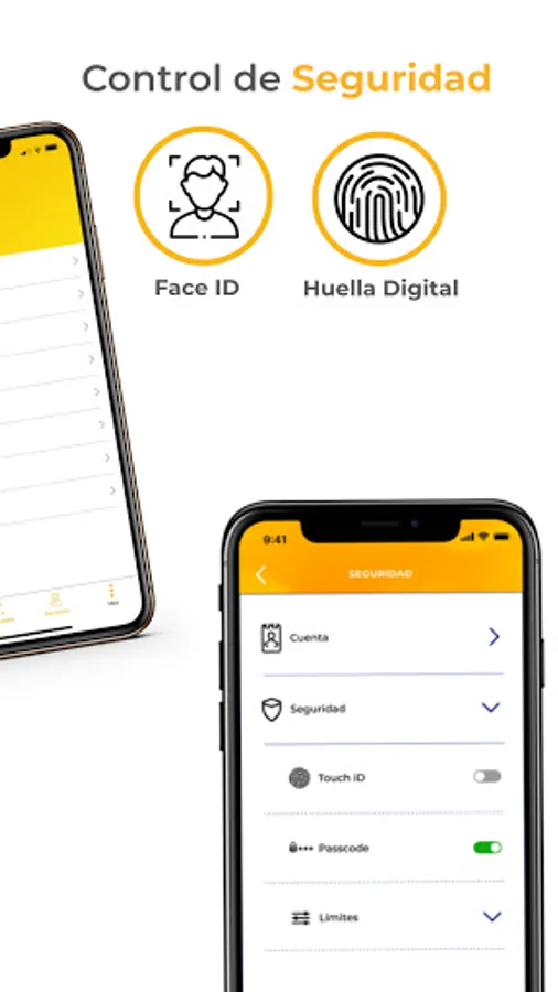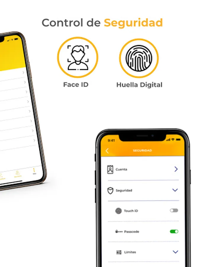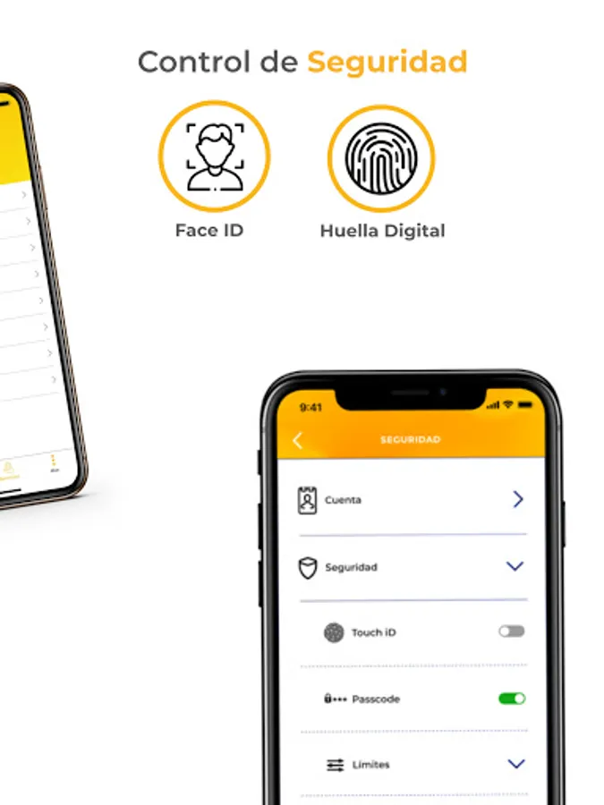 For greater confidence with your transfers and payments, the application uses the security system that you have implemented in your device: your fingerprints or Face ID and access passcode.