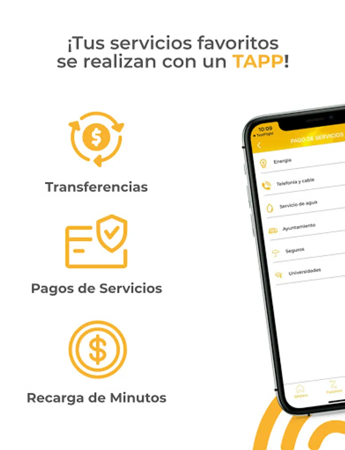 Tapp is a multifunctional application that allows unifying the Electronic Wallet services, with the ability to send money to anyone who has the application and receive money from any contact you have within the app, as well as Recharge of minutes and Service Payments using Visa cards.
