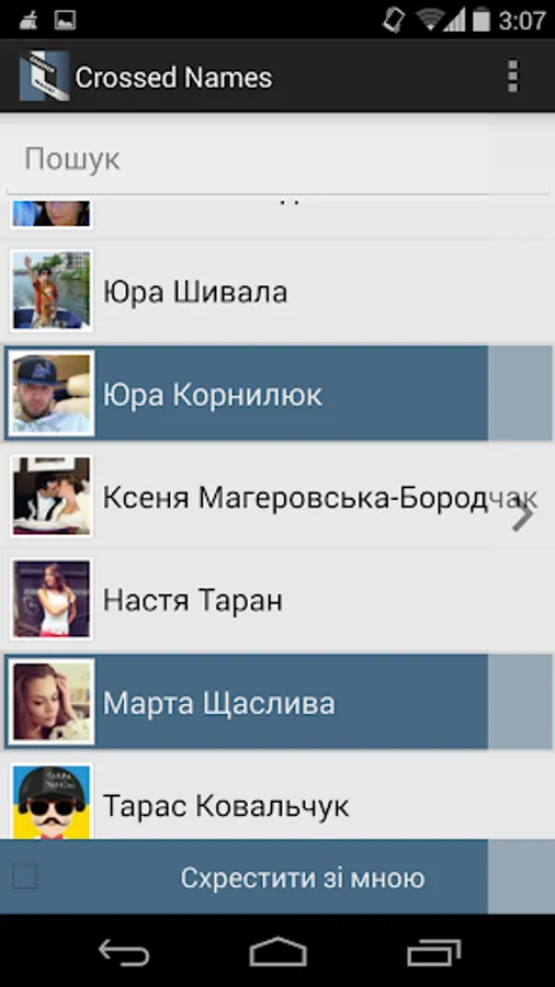Crossed Names is a great opportunity to laugh with your friends from vkontakte of fun mixing your names, surnames and so on. With this application you can easily cross your initials and send the results to friends!