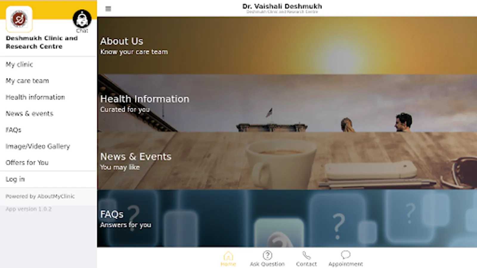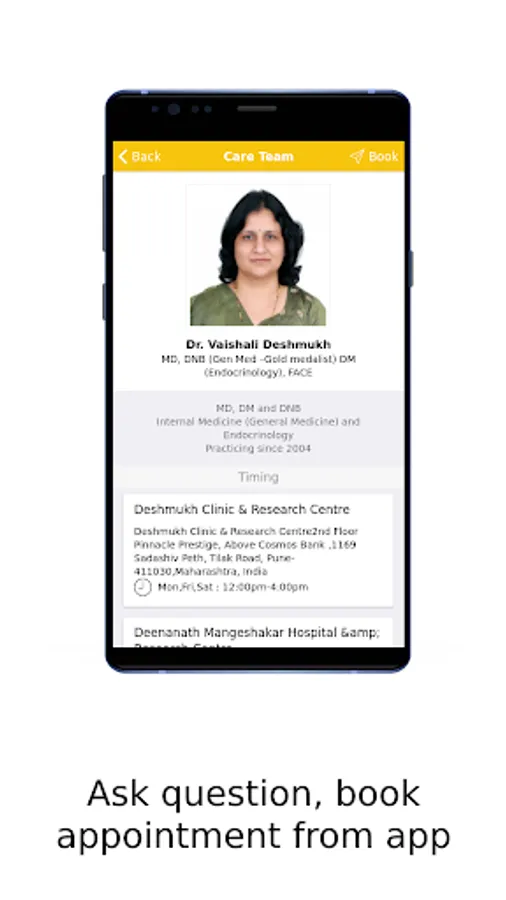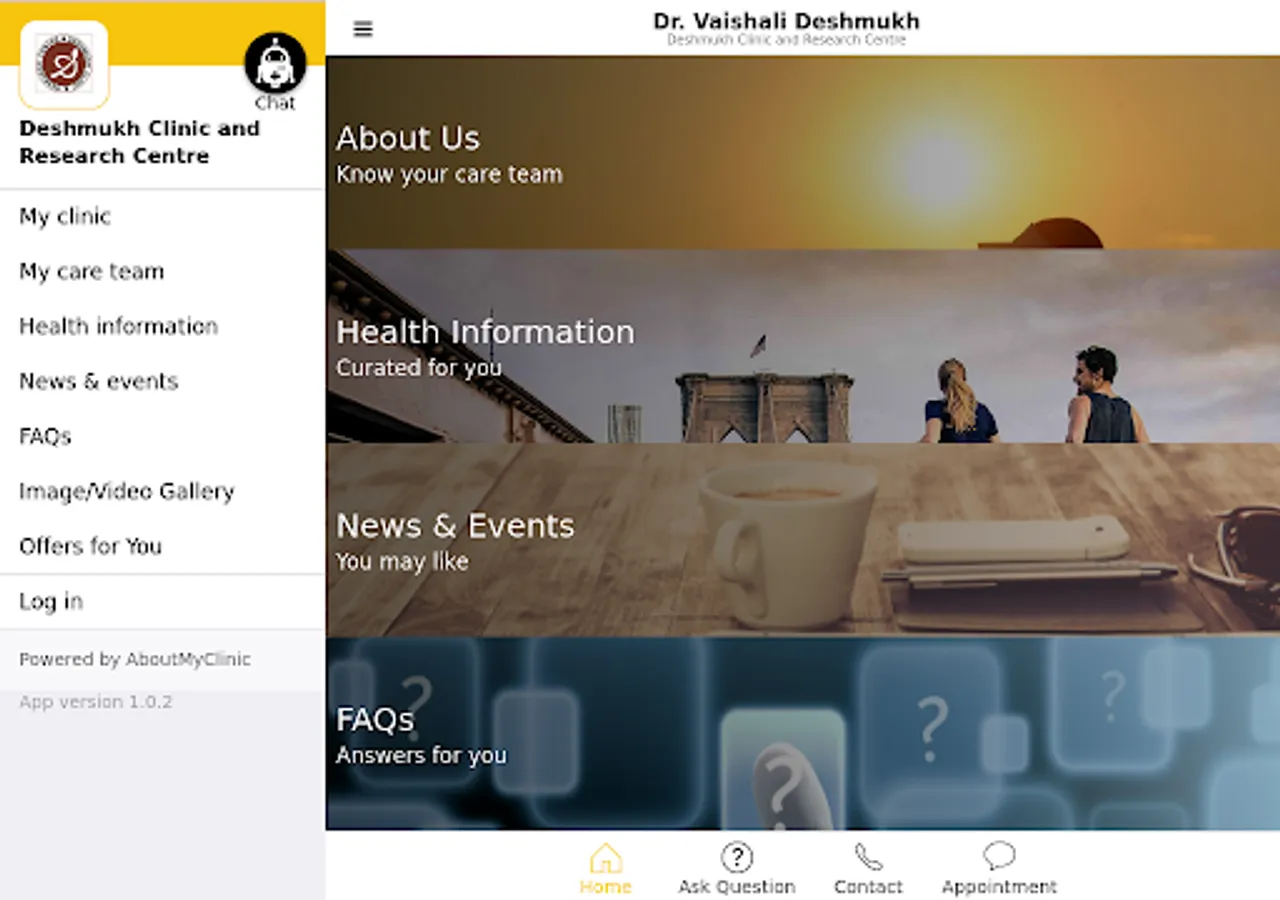 This official app of Deshmukh Clinic & Research Centre connects you with renowned General Medicine Specialist in Pune, Dr. Vaishali Deshmukh and his entire care team. The app gives practical & helpful tools to manage your health & communications with Deshmukh Clinic & Research Centre on the go. The app provides engaging & evidence-based health information on diseases, conditions, treatments & procedures, in a language that you can easily understand. You can also find answers to frequently asked questions (FAQs). Should you not find an answer to your specific question, simply ask the same to your favorite care team at Deshmukh Clinic & Research Centre and converse with them securely. You can also request an appointment, stay tuned with news, or register for exciting events at the clinic which may help you manage your health better.