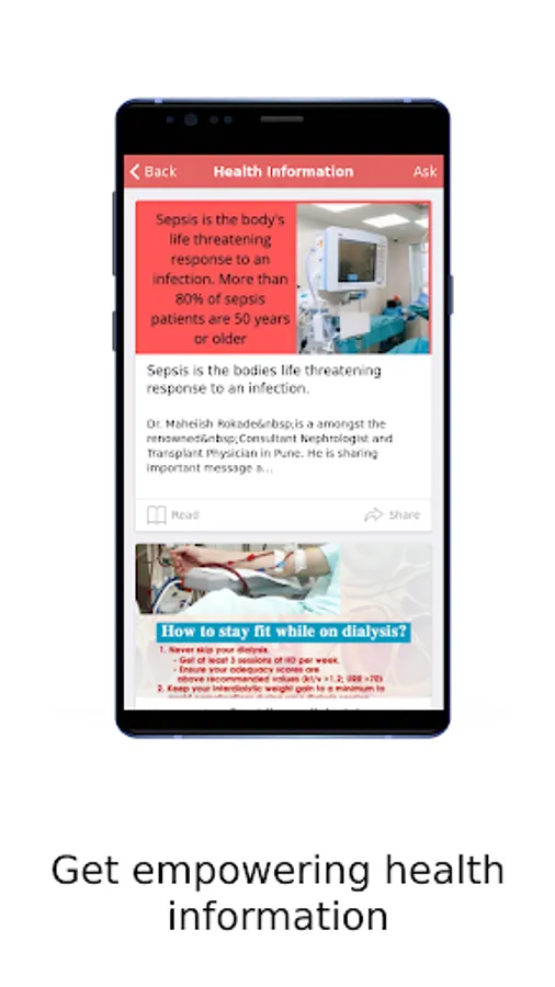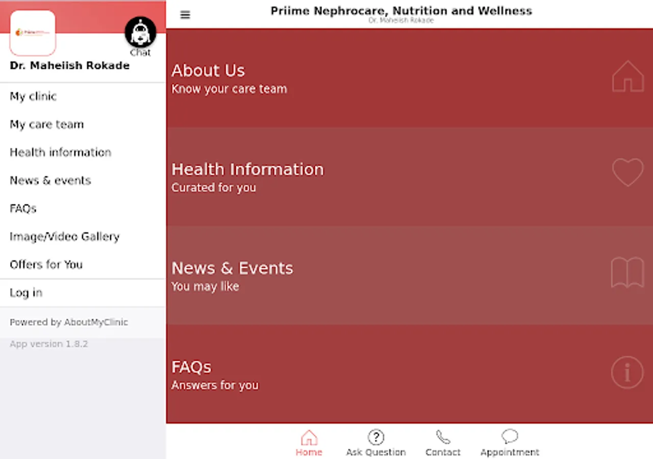 This official app of Priime Nephrocare, Nutrition and Wellness connects you with renowned Nephrologist in Pune, Dr. Maheiish Rokade and his entire care team. The app gives practical & helpful tools to manage your health & communications with Priime Nephrocare, Nutrition and Wellness on the go. The app provides engaging & evidence-based health information on diseases, conditions, treatments & procedures, in a language that you can easily understand. You can also find answers to frequently asked questions (FAQs). Should you not find an answer to your specific question, simply ask the same to your favorite care team at Priime Nephrocare, Nutrition and Wellness and converse with them securely. You can also request an appointment, stay tuned with news, or register for exciting events at the clinic which may help you manage your health better.