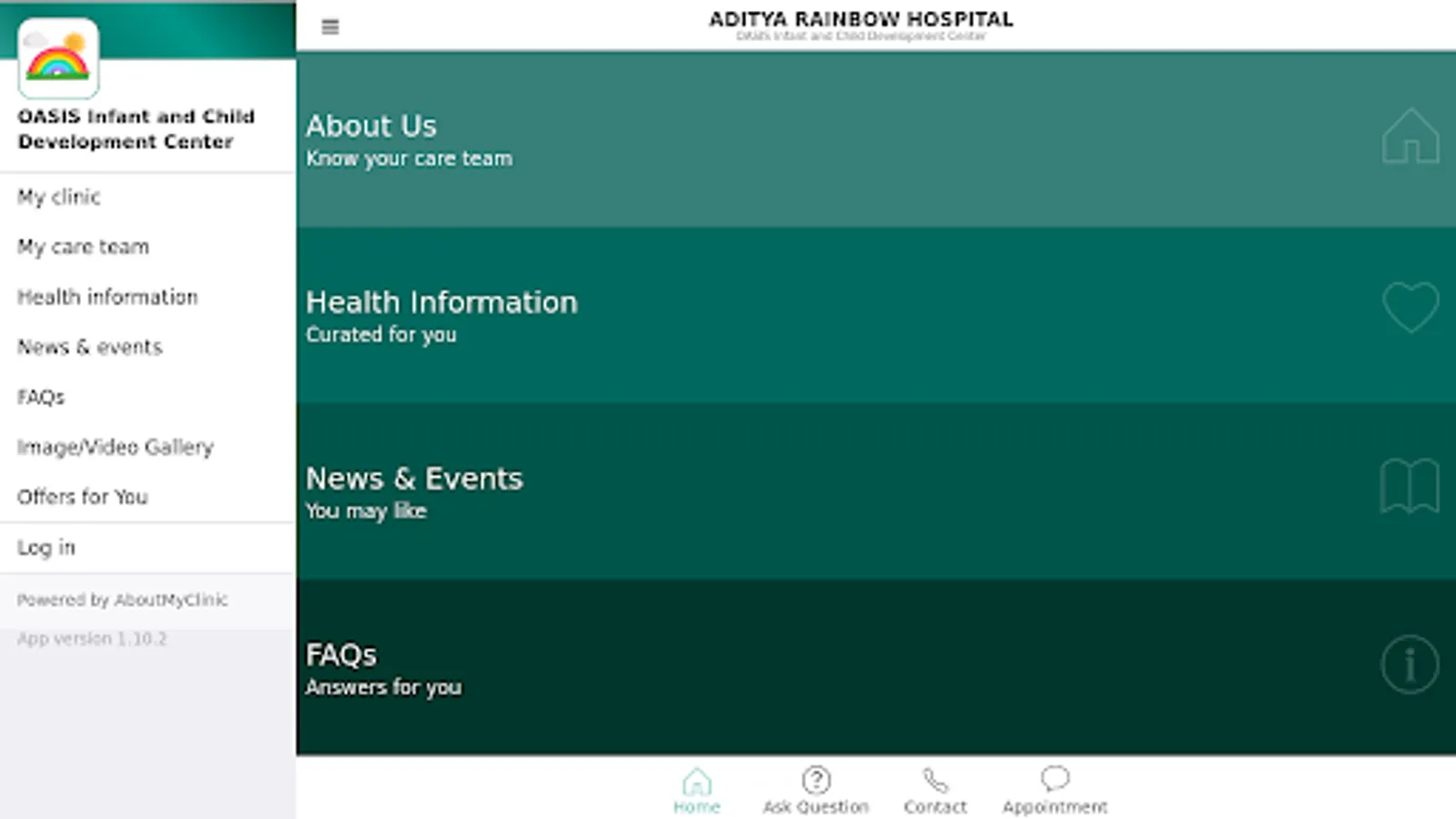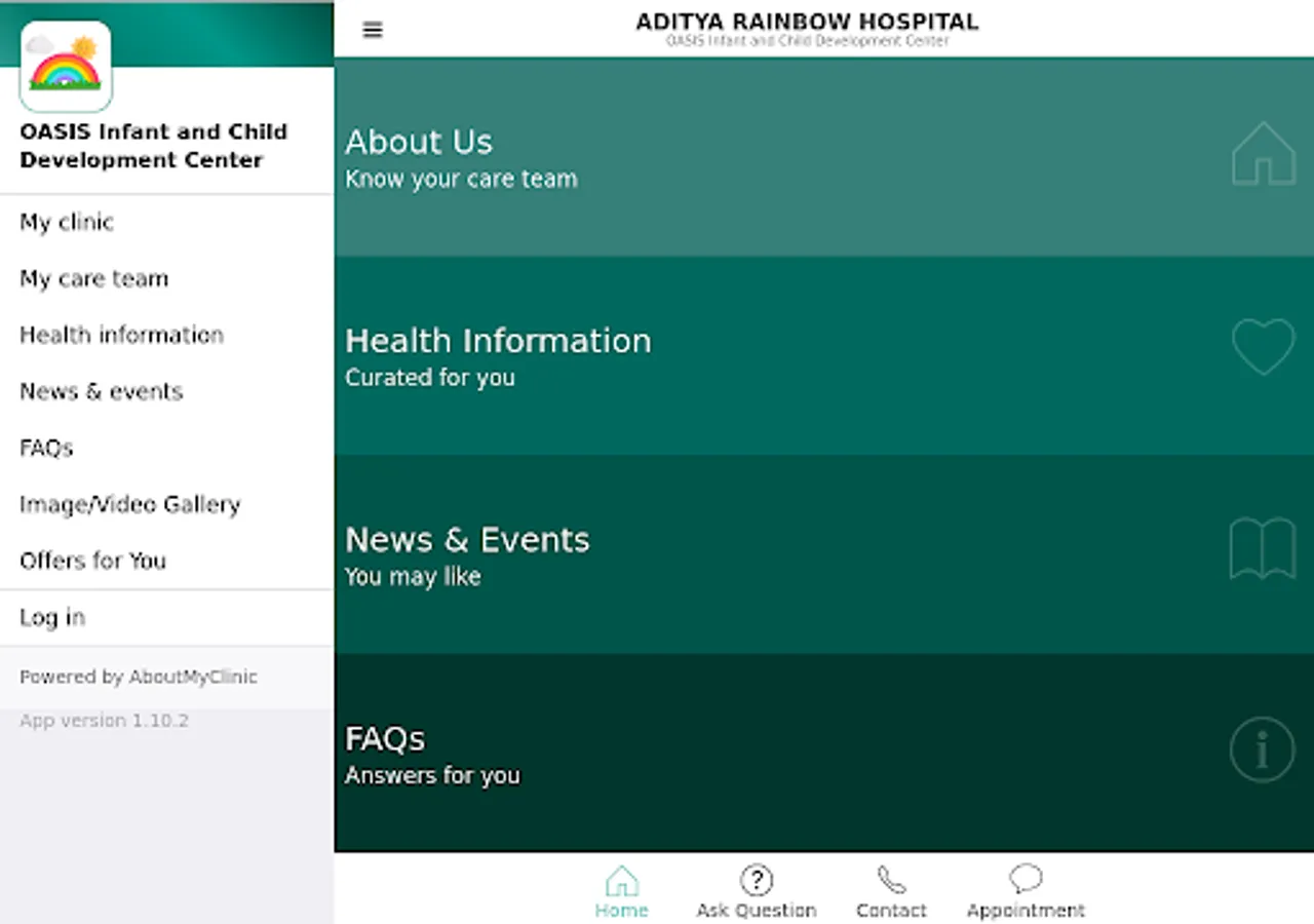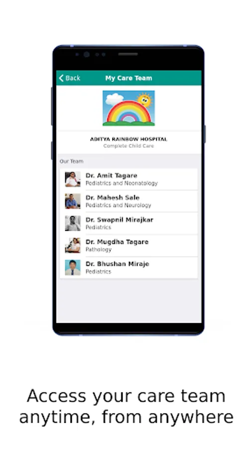 This official app of ADITYA RAINBOW HOSPITAL connects you with renowned Pediatrician in Sangli, Dr. Amit Tagare and his entire care team. The app gives practical & helpful tools to manage your health & communications with ADITYA RAINBOW HOSPITAL on the go. The app provides engaging & evidence-based health information on diseases, conditions, treatments & procedures, in a language that you can easily understand. You can also find answers to frequently asked questions (FAQs). Should you not find an answer to your specific question, simply ask the same to your favorite care team at ADITYA RAINBOW HOSPITAL and converse with them securely. You can also request an appointment, stay tuned with news, or register for exciting events at the clinic which may help you manage your health better.