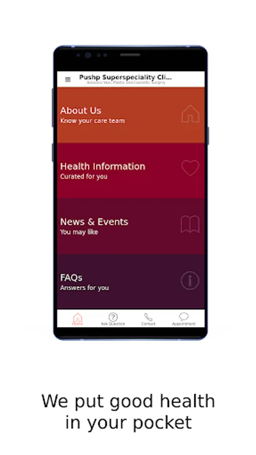 This official app of Pushp Superspeciality Clinic connects you with renowned Plastic Surgeon in Pune, Dr. Sandeep Naphade and his entire care team. The app gives practical & helpful tools to manage your health & communications with Pushp Superspeciality Clinic on the go. The app provides engaging & evidence-based health information on diseases, conditions, treatments & procedures, in a language that you can easily understand. You can also find answers to frequently asked questions (FAQs). Should you not find an answer to your specific question, simply ask the same to your favorite care team at Pushp Superspeciality Clinic and converse with them securely. You can also request an appointment, stay tuned with news, or register for exciting events at the clinic which may help you manage your health better.