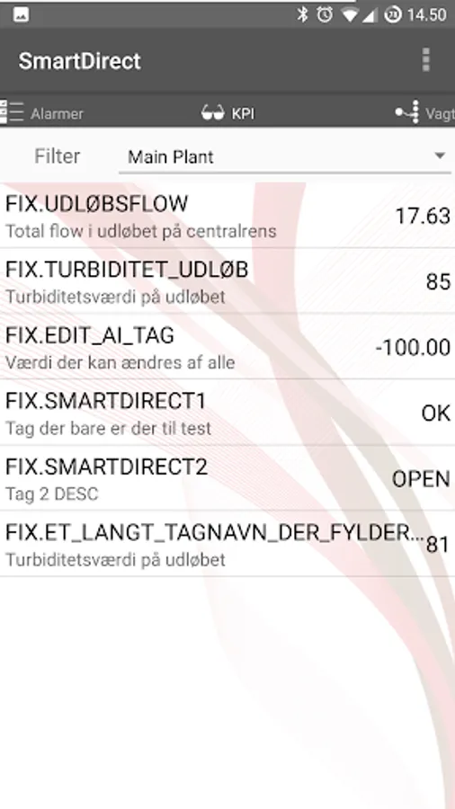 SmartDirect is an application to monitor reception of alarms from a predefined list of iFix Scadas and can easily acknowledge them again.
