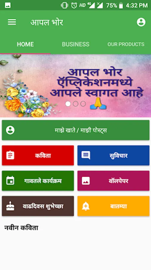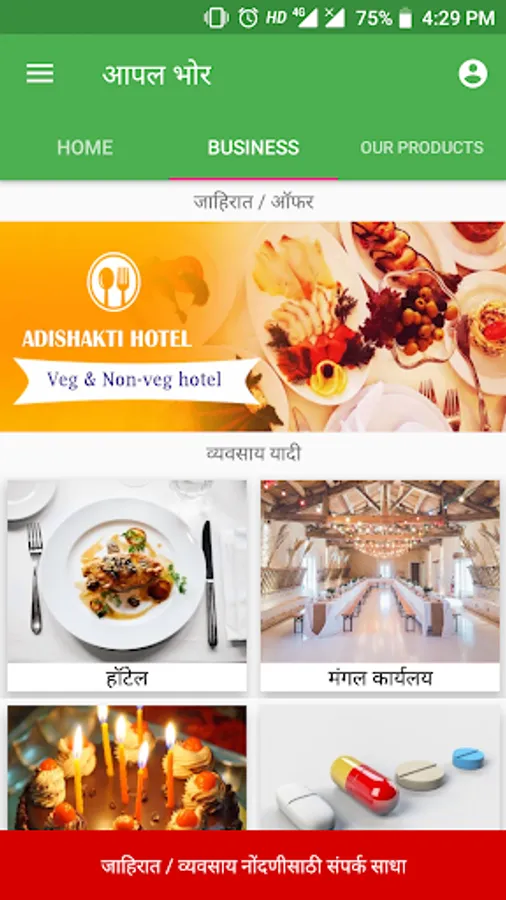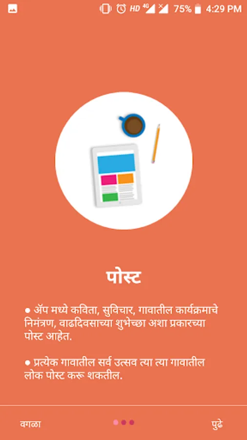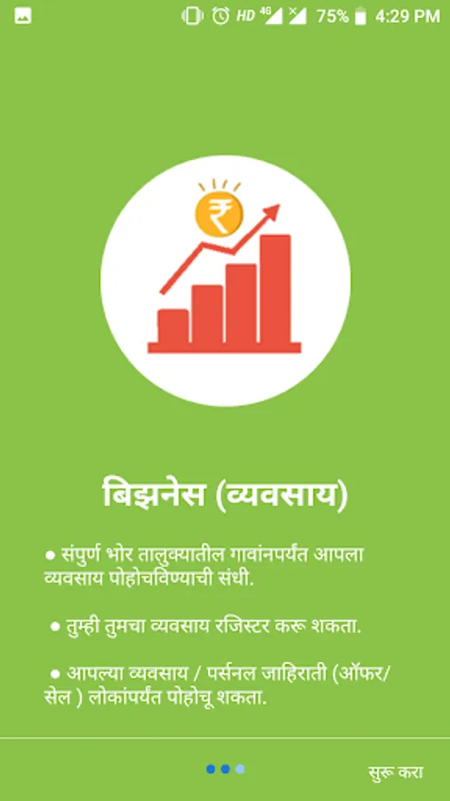 This app is build to connect all villages. It helps people to reach all kind of shops within a second. People can view different offers offered by shops and get connected with them easily. People can post birthday wishes, festival wishes,village program invitations, poems etc. People can read latest news,horoscope in marathi etc.