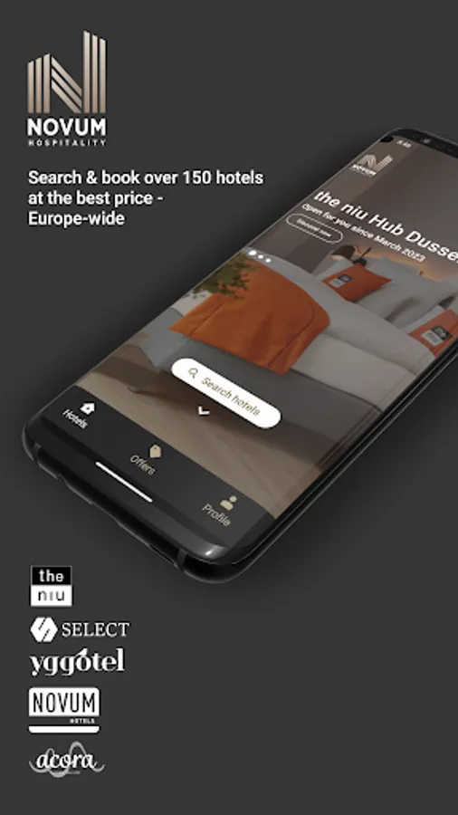 Through NOVUM Hospitality App you can enjoy your stay at 5 hotel brands: the niu, Yggotel, Select Hotels, acora Living the City, Novum Hotels. With our app, you have everything you need to make your hotel bookings simple and easy. Download the app now and start getting the most out of your travels.