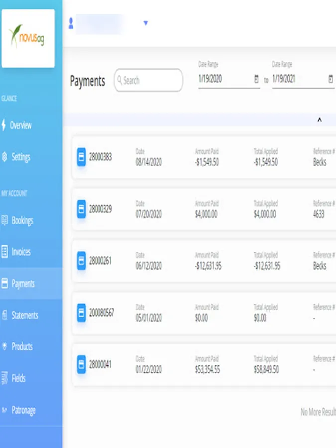NovusAg360 provides easy access to your account. This app enables our customers to view account information, including invoices, balances and even enter online payments. Also available is detailed field data and notifications. Supporting the Members of the Novus Ag Network.