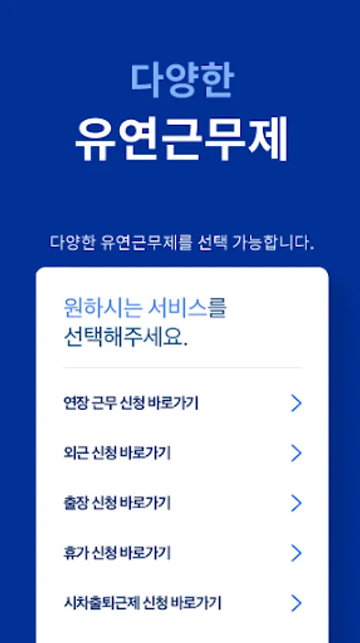 You can easily apply for work-related matters (extended work, vacation, business trip, outside work) and view work details anytime, anywhere on mobile.