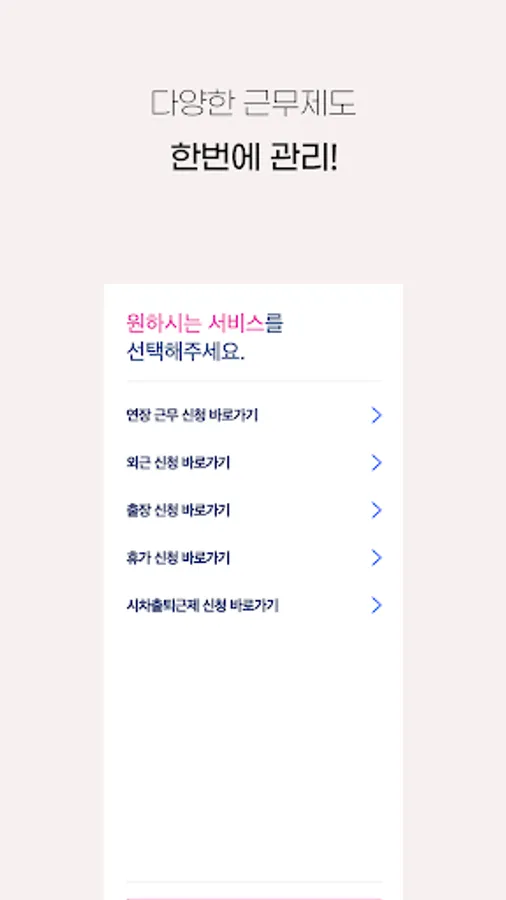 You can easily apply for work-related matters (extended work, vacation, business trip, outside work) and view work details anytime, anywhere on mobile.