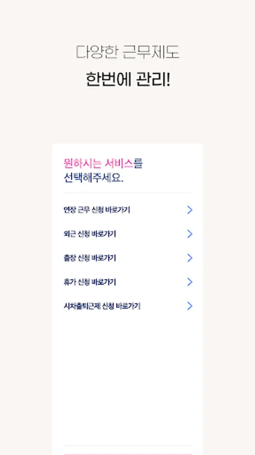 You can easily apply for work-related matters (extended work, vacation, business trip, outside work) and view work details anytime, anywhere on mobile.