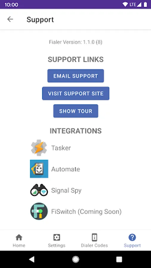 Fialer also allows for executing dialer codes in the background! With our integrations, your favorite apps have more control over to which network you're connected and when dialer codes are run. Want your phone to be on one carrier at work but a different one at home? Want to schedule a time for the debug code to run? All this is now possible with our integrations!